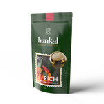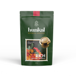 The luxurious taste of Hunkal Estate Coffee's RICH is an indulgence. An exquisite blend of 80% coffee and 20% chicory, this exceptional ground coffee is crafted with precision at our own Thogarihunkal Estate combining the finest high-altitude beans with the rich character of chicory for a decadent coffee experience.
